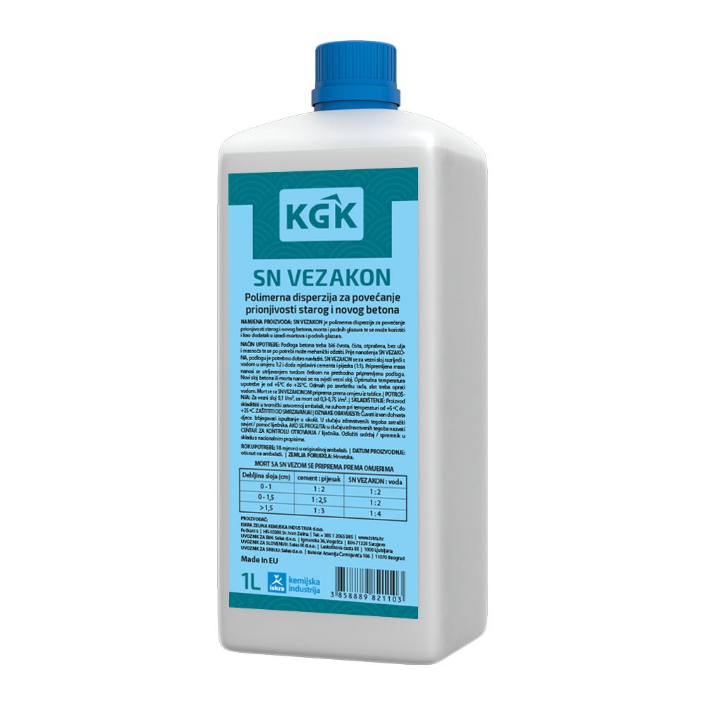 VEZAKON SN je polimerna disperzija za povećanje prionjivosti starog i novog betona, morta i podnih glazura te se može koristiti i kao dodatak u izradi mortova i podnih glazura. |